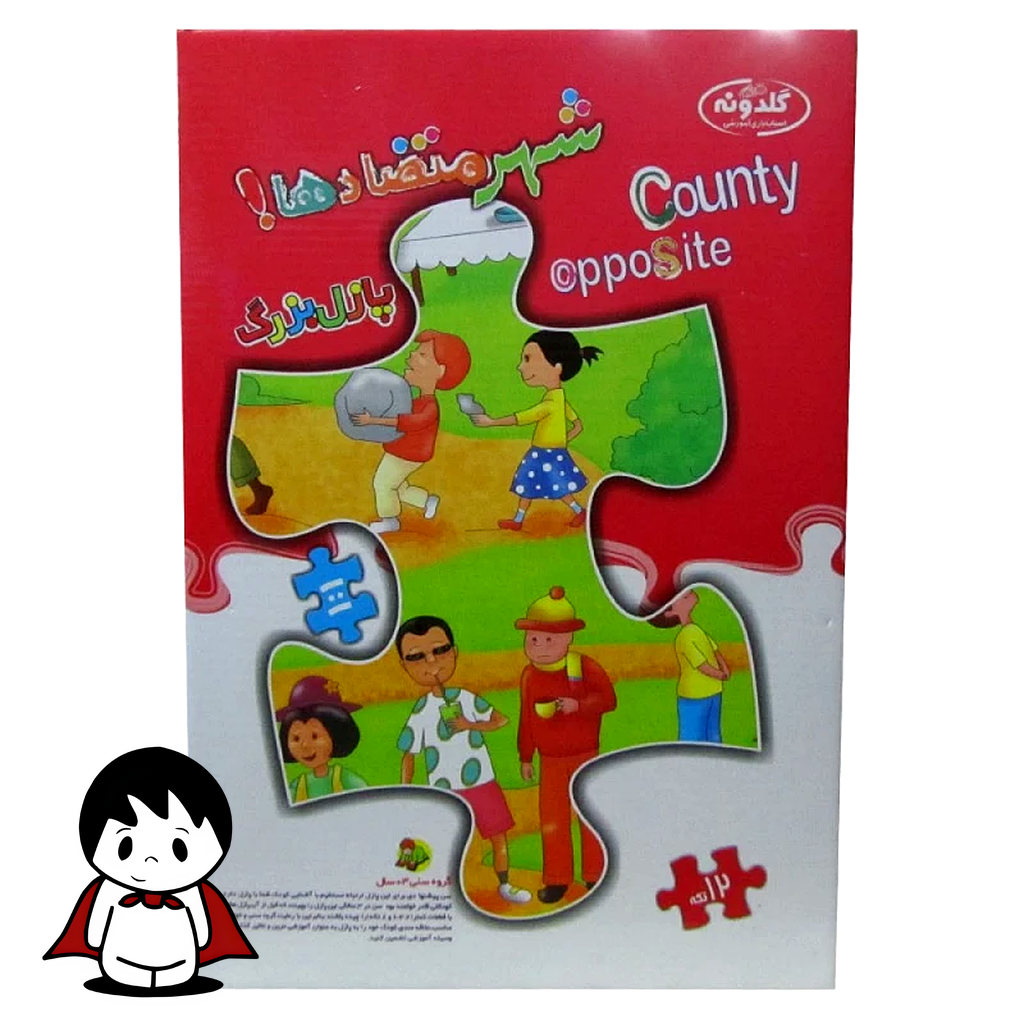 پازل بزرگ “شهر متضادها” یک ابزار آموزشی هوشمندانه و سرگرمکننده است که به روشی کاملاً بصری و ملموس، کودکان را با دنیای مفاهیم انتزاعی و متضاد آشنا میکند. این پازل کفپوش ۱۲ تکه با ابعاد بزرگ و تصاویر زنده و جذاب، کودکان را به یک ماجراجویی فکری دعوت میکند تا جفتهای متضادی مانند شب و روز، بلند و کوتاه، سریع و آهسته، خوشحال و غمگین را در دل یک شهر شلوغ و پرماجرا کشف کنند. این فرآیند جستجو و تطبیق، علاوه بر ایجاد سرگرمی، به تقویت درک مفاهیم کلیدی، مهارت حل مسئله و پایهریزی تفکر منطقی در کودکان کمک شایانی میکند.