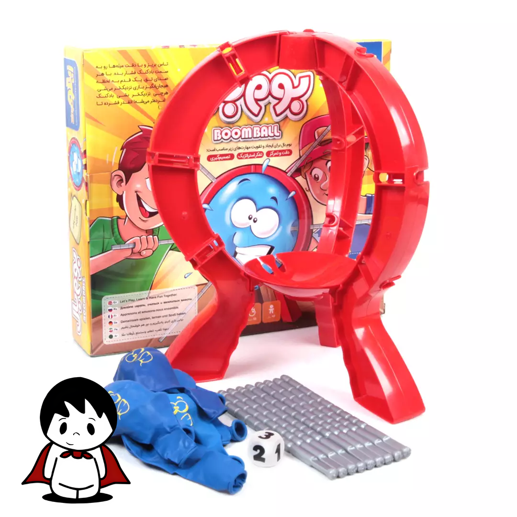 آیا برای یک بازی پر از هیجان، خنده و استرس آمادهاید؟ “بوم بال” یک بازی دورهمی فوقالعاده است که در آن شانس و جسارت، حرف اول را میزند. هدف ساده است: میلهها را بدون ترکاندن بادکنک به داخل سازه فشار دهید. هر بازیکن در نوبت خود تاس میاندازد و به تعداد عدد روی تاس، میله را به داخل فشار میدهد (به صورت کلیکی). با هر کلیک، تنش بالاتر میرود و همه منتظر صدای “بوم” هستند! این بازی یک انتخاب عالی برای مهمانیها، دورهمیها و جمعهای خانوادگی است که لحظاتی سرشار از هیجان و شادی را برای همه رقم میزند.