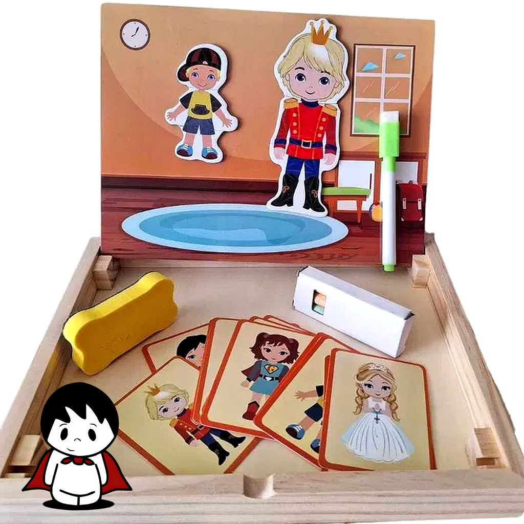 - تخته دو منظوره کاربردی: یک طرف تخته به صورت مگنتی برای چسباندن قطعات و خلق داستان است و طرف دیگر آن یک وایتبرد کامل برای نقاشی و نوشتن با ماژیک است.