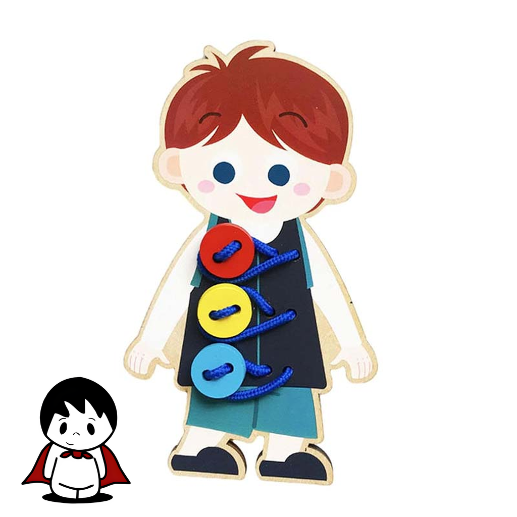 بازی مونته سوری نخ و دکمه یکی از ابزارهای آموزشی کلیدی و کلاسیک در روش شناختهشده مونته سوری است که با هدف اصلی تقویت مهارتهای عملی زندگی (Practical Life Skills) طراحی شده است. این مجموعه چوبی جذاب، که در این مدل با طرحهای پسرانه (مانند ماشین، هواپیما یا حیوانات) ارائه شده، به شکلی کاملاً سرگرمکننده و درگیرکننده به کودکان کمک میکند تا یکی از مهمترین مهارتهای خودیاری، یعنی بستن دکمه، را بیاموزند و حس استقلال و خودکفایتی را تجربه کنند.