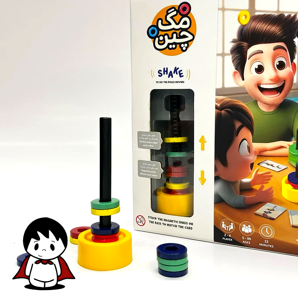 - محتویات: شامل مجموعهای از قطعات مغناطیسی در اشکال هندسی مختلف (مانند مربع، مثلث و…) و رنگهای ترکیبی و شاد.